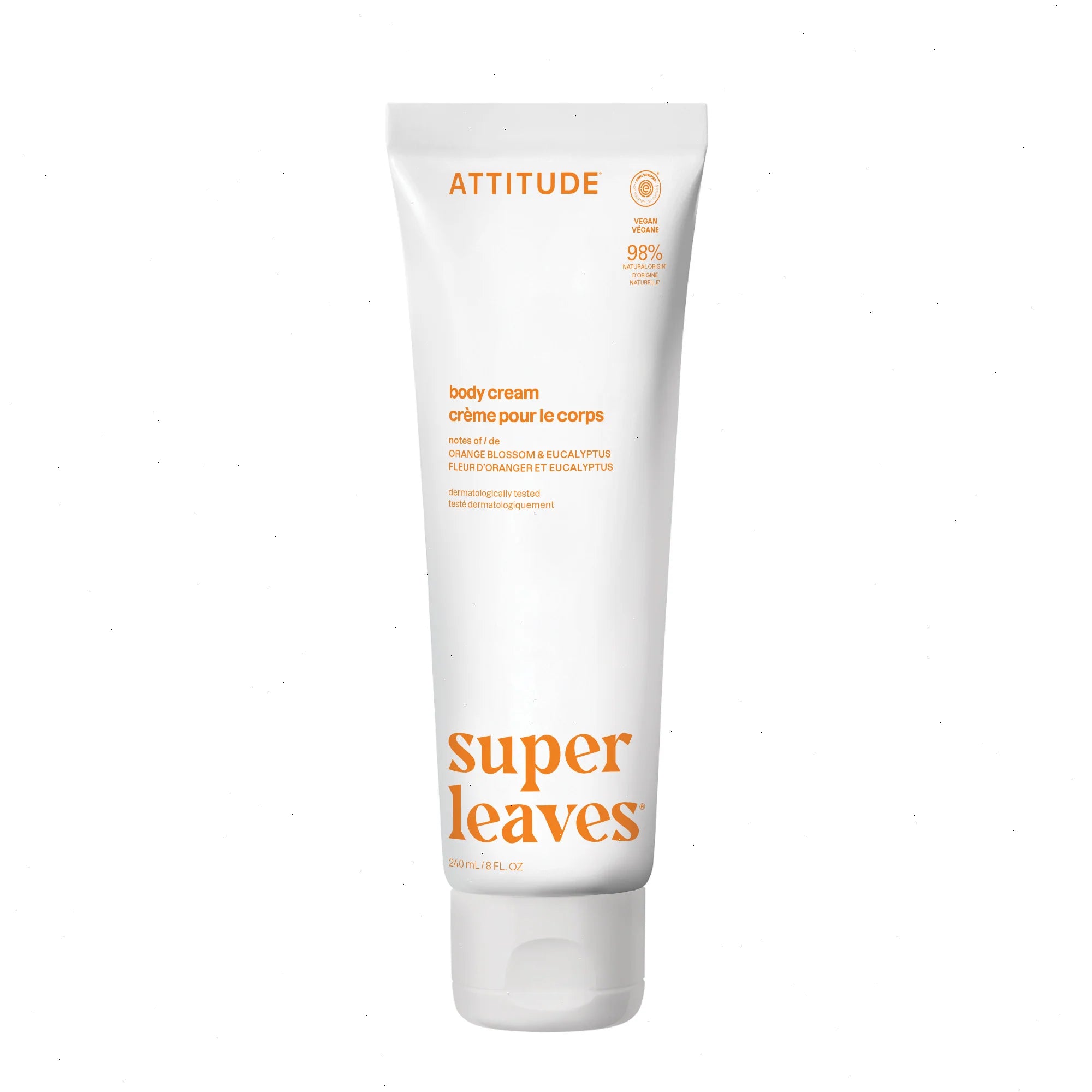 ATTITUDEâ„¢ vegan Energizing body cream pampers your skin. Its formula contains orange leaves extract to improve the appearance of dry skin and restore its suppleness. EWG VERIFIEDâ„¢ and dermatologically tested, this cream is enriched with vitamin and mineral-rich Indian cress and watercress to revitalize skin. Its rich, non-greasy texture thoroughly nourishes your skin. Improve your daily skincare routine with this essential infused with a floral fragrance with notes of orange blossom and eucalyptus.