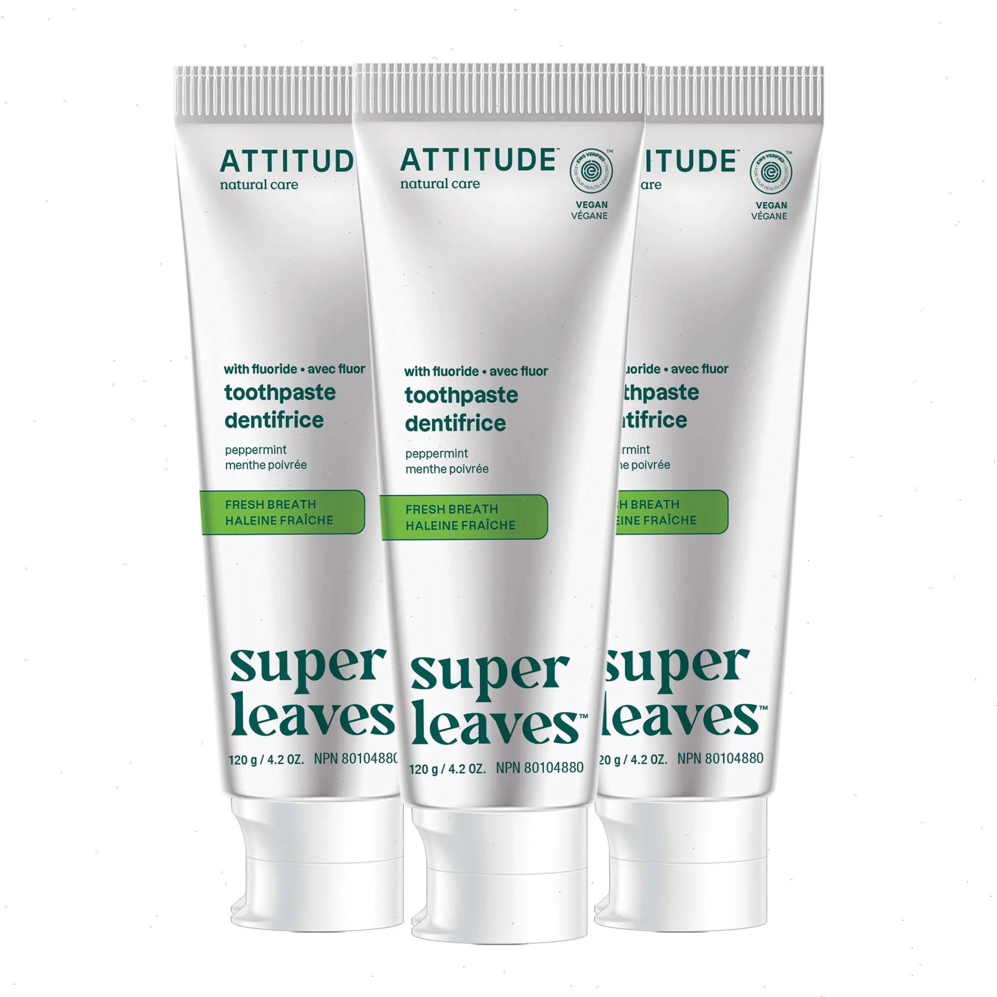 ATTITUDE Toothpaste Fresh Breath Toothpaste for Adults is formulated with plants and minerals and contains fluoride, which makes it a toothpaste that is both natural and effective. Its formula contains sodium fluoride to protect your teeth from cavities, peppermint, for fresh breath and hydrated silica, a natural whitening agent. This vegan, cruelty-free toothpaste also helps restore and mineralize enamel for stronger, healthier teeth. Your oral hygiene will be impeccable from gums to teeth, thanks to this EWG VERIFIEDTM toothpaste made with papaya and green tea leaf extracts.