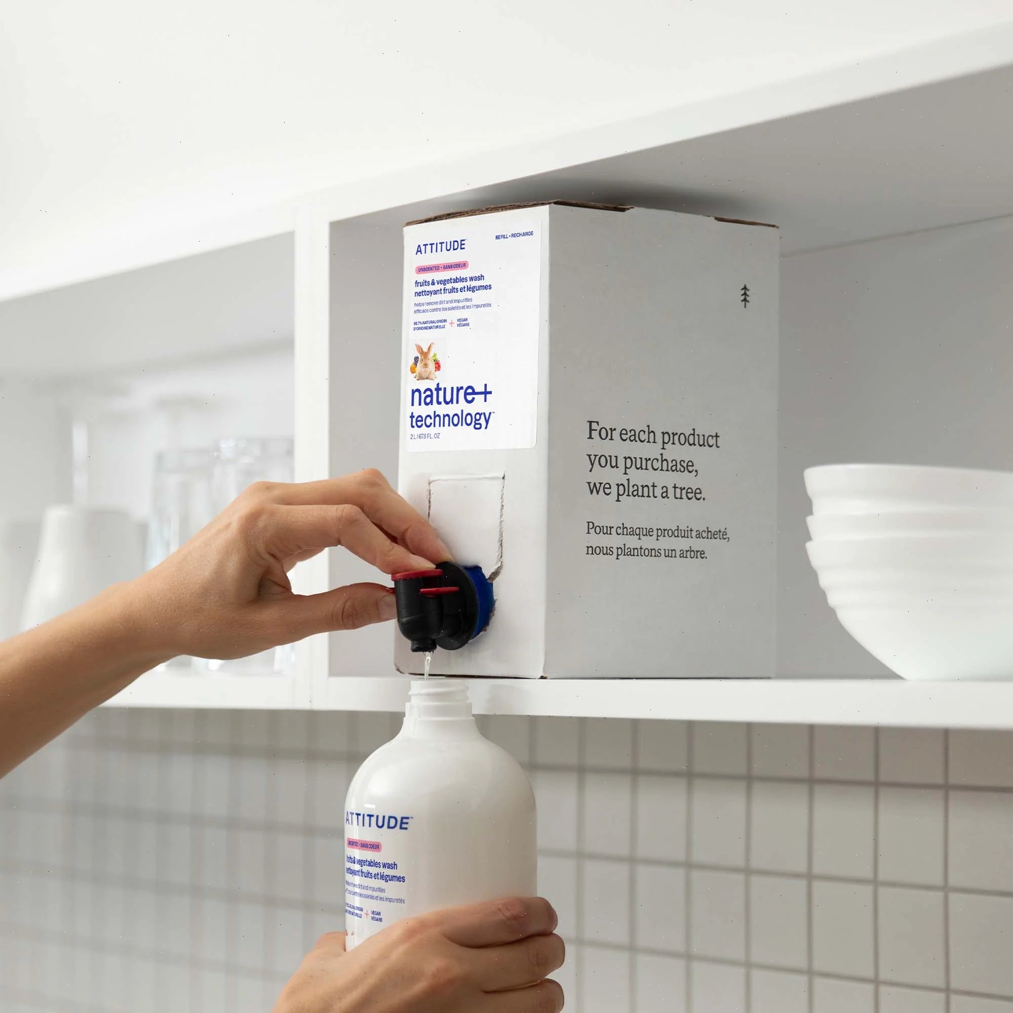 Formulated with 94% naturally derived ingredients, ATTITUDE™ fruit & vegetable wash – unscented is practical because it can be sprayed directly on fruits and vegetables or used as a soaking solution. Its vegan and cruelty-free formula is offered in a 2L eco-refill format that’s easy to carry and refill at home, meaning you can wash and eat your fresh produce worry-free.
