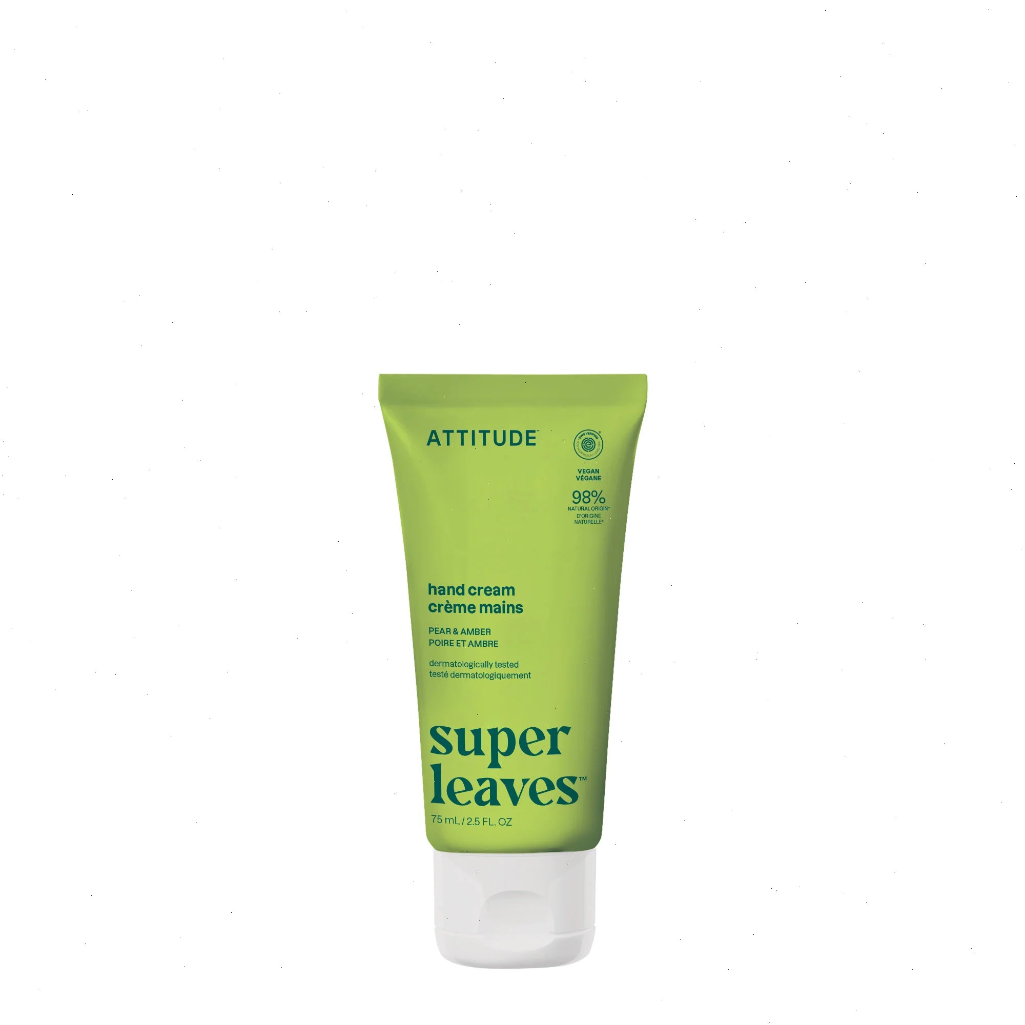 Our Super Leaves hand cream formula is enriched with shea butter to nourish and soothe dry skin. With pear and amber fragrance to soothe skin and keep it healthy. EWG VERIFIEDâ„¢ and dermatologically tested, this essential vegan cream contains vitamin and mineral-rich Indian cress and watercress to revitalize skin. Infused with a warm fragrance with notes of sweet pear and rich amber, its lightweight and non-greasy texture provides your hands with daily nourishment. Apply it any time thanks to its easy-to-carry format!