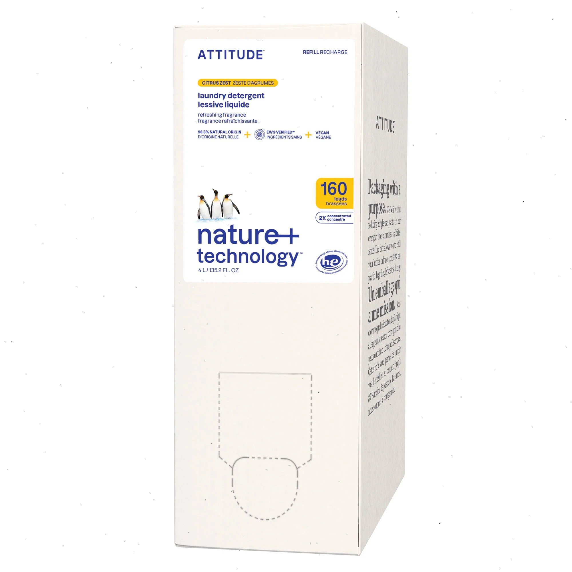 Formulated with 98% naturally derived ingredients, ATTITUDE™ laundry detergent packs excellent detergent power and is free of enzymes. Its invigorating citrus top notes blend harmoniously with floral and herbaceous lavender. Its concentrated formula allows you to do more loads while using the same amount of detergent. Our laundry detergent is effective for cold water wash, saving you energy. Its vegan formula is certified by PETA and is offered in a 4L eco-refill format that’s easy to use at home.