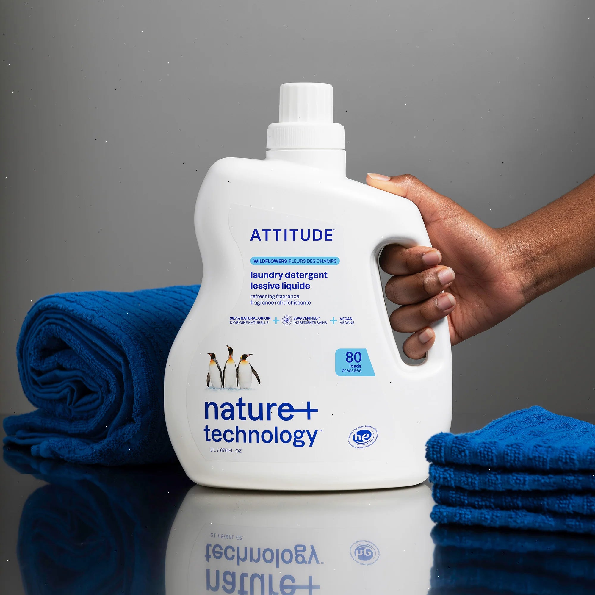 Formulated with 98% naturally derived ingredients, ATTITUDE™ laundry detergent packs excellent detergent power and is free of enzymes. Its comforting aromatic blend of lavender and herbs is complemented by warm, wooded notes. The bottle is made from HDPE #2 plastic—the easiest plastic to recycle—and can be reused again and again thanks to our revolutionary eco-refills. Our laundry detergent is effective for cold water wash, saving you energy. Its vegan and cruelty-free formula is gentle on skin.