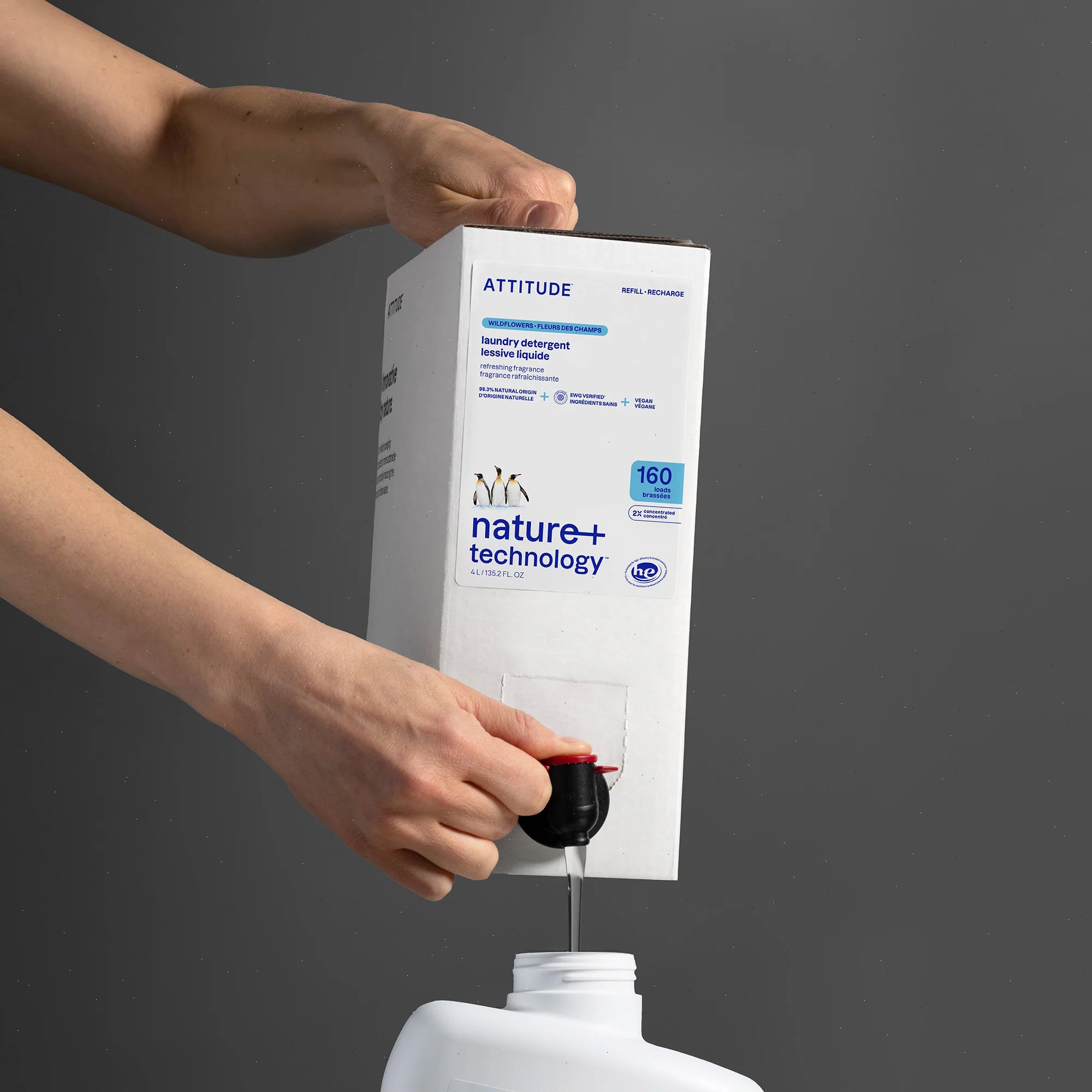 Formulated with naturally sourced ingredients Formulated with 98% naturally derived ingredients detergent power and is free of enzymes. The orange blossom and vanilla perfectly balance the wood aroma, which anchors the fragrance in sweet floral notes. It’s a symphony of scents that leaves your laundry smelling like a bouquet of wildflowers. Its concentrated formula allows you to do more loads while using the same amount of detergent. Our laundry detergent is effective for cold water wash, saving you energy. Its vegan formula is EWG VERIFIED™ and certified by PETA and is offered in a 4L eco-refill format that’s easy to use at home.